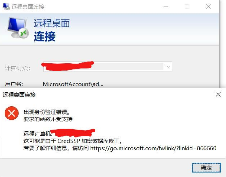 提示“出现身份验证错误。要求的函数不受支持。可能由于CredSSP 加密 Oracle 修正”。